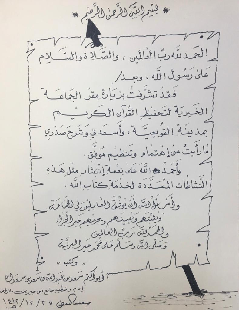 قام رئيس جمعية تحفيظ القرآن الكريم بمحافظة القويعية (إتقان) فضيلة الشيخ: محمد بن عبد الرحمن الهويمل ، بمشاركة عدد من أعضاء مجلس إدارة الجمعية والعاملين فيها بجولات لعدد من المجمعات داخل م