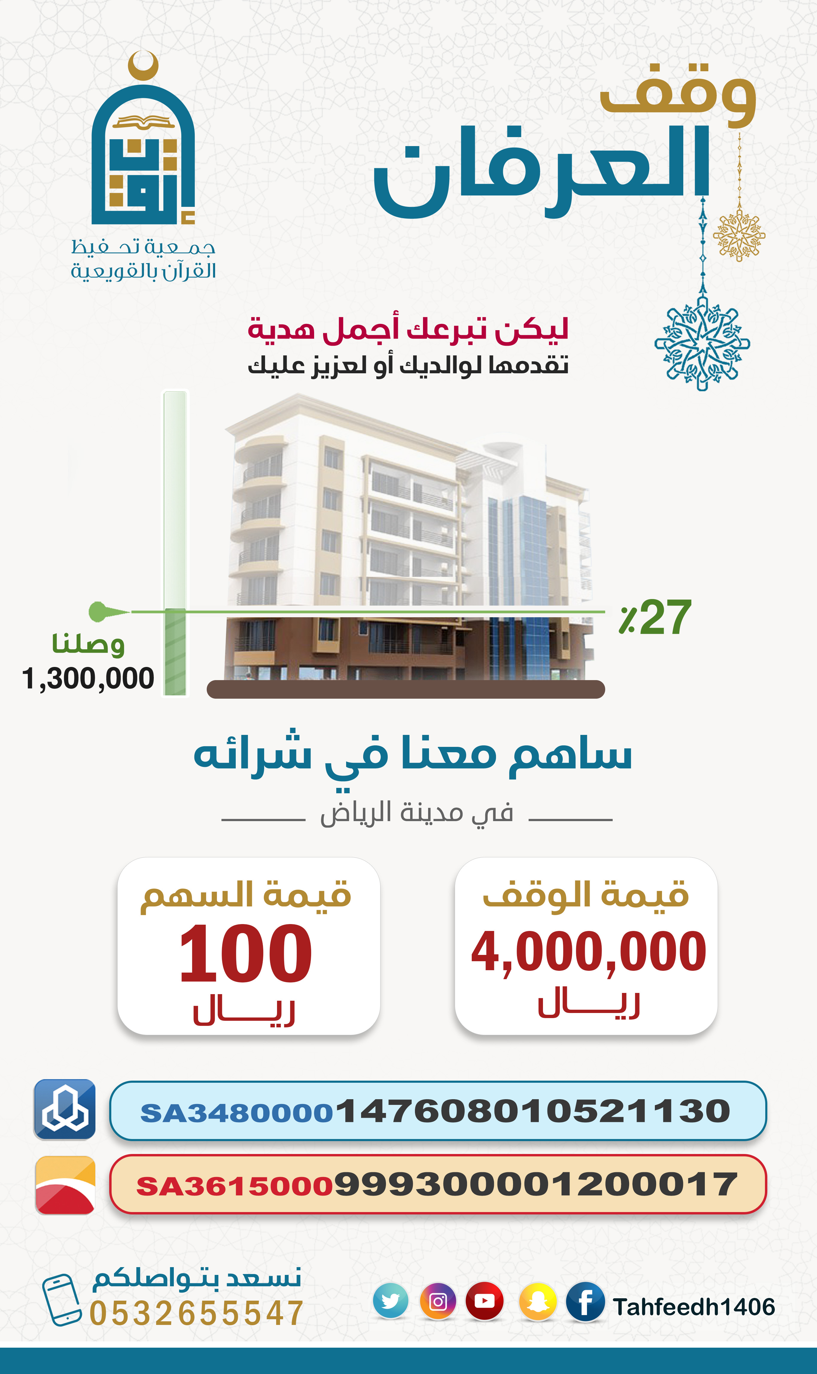 بحمد الله وفضله أنطلقت الدورة الصيفية لحفظ ومراجعة القرآن الكريم لعام 1447هـ ،، وذلك يوم الأحد الموافق : 1447/1/4هـ ،، في القطاعات التالية : ( القويعية _جامع الزهور ) ، (الرويضة_جامع ال