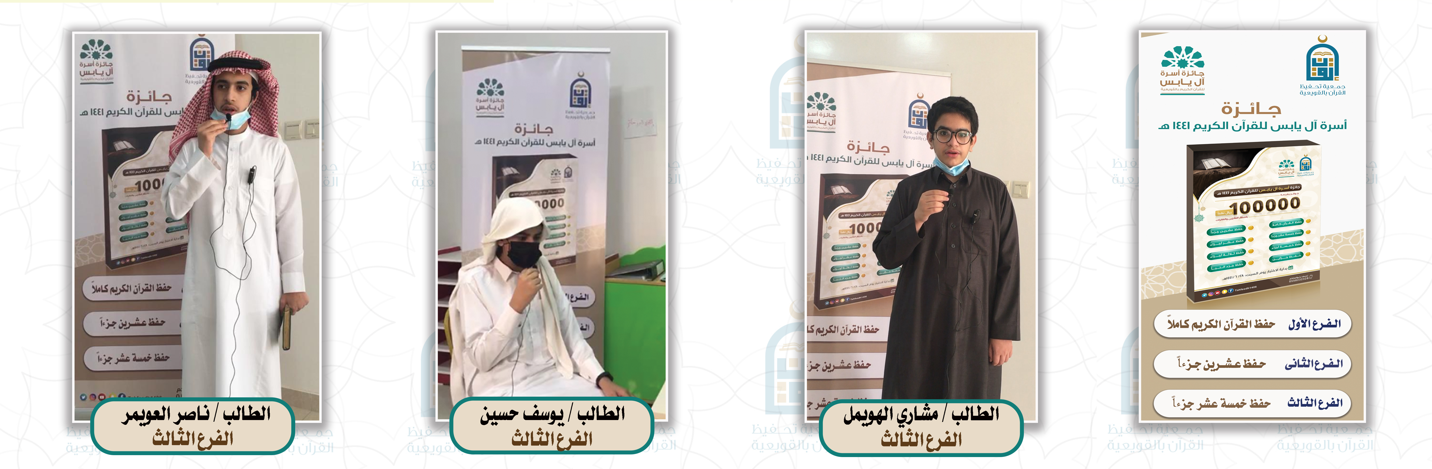 بفضل الله انطلقت صباح يوم السبت 14 شعبان 1442هـ اختبار الفروع النهائية لجائزة آل يابس للقرآن الكريم 1441 هـ , وقد شارك في الفرع الأول ( القرآن الكريم كاملاً ) 4 طلاب , وفي الفرع الثاني ( 20جزءاً ) 8 ط