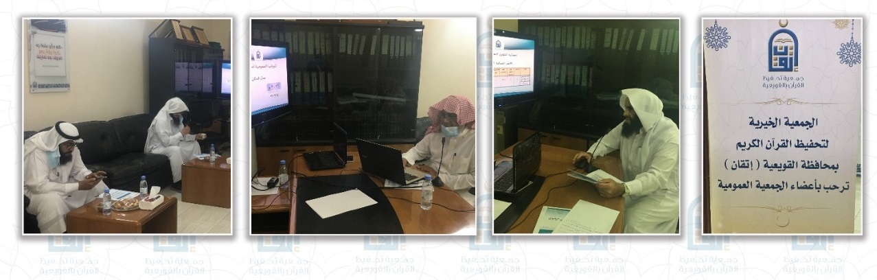 بحمد الله عقدت الجمعية الخيرية لتحفيظ القرآن الكريم بمحافظة القويعية مساء يوم الأربعاء 16/9/1442 هـ اجتماع الجمعية العمومية ( الرابع عشر) عبر تطبيق الزوم وافتتح الاجتماع بالقرآن الكريم ثم كلمة رئيس ال